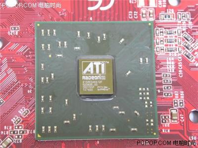 散热器背后就是Radeon X550图形芯片,它基于RV370核心,有4条渲染管线和2个顶点单元。也是采用0.11微米制作工艺,并建有SmartShader2.0、SmoothVision2.1图形优化系统。根据官方公布的性能,是间于X300和X600之间的产品。