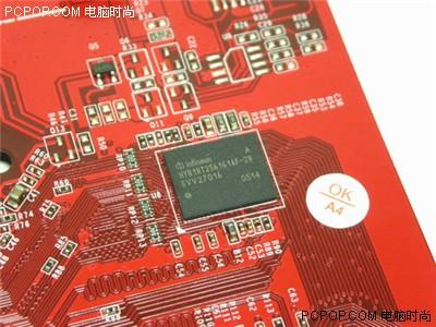 DDR2显存颗粒,由infineon供货,延时2.8ns,256M128bit显存规格。不少半导体厂商量产DDR2显存,致使近期不少显卡选择了价格与DDR1差距不大的DDR2。