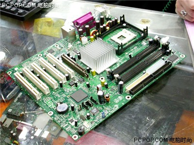扩展接口方面,主板提供1个AGP 8×、5个PCI和4个DIMM内存插槽;2个带Raid0功能的S-ATA,2个P-ATA,8个USB2.0接口。功能方面,主板并没有提供音频芯片,因此不具备声卡功能,需要玩家自行添加一块声卡;而Intel 8247EI网络芯片为主板提供10/100/1000Mbps自适应网卡功能。