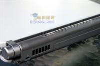 从外形来看,P7010绝对可以称得上是小巧轻薄了,而且其外观的色调和全新的造型也显得是更加时尚。外观最引人注目的地方是依然沿用了P5010的圆柱轴设计,但是去掉了FUJITSU经典的状态液显屏,使用了传统的LED发光管,并且巧妙隐藏在水银色的长条中。P7010的外壳上并没有镶嵌FUJITSU的logo,类似碳纤维材质的外壳摸上去光滑细腻,其外壳是由高硬度且很有质感的材料制成,这种材料的使用则提供了更良好的保护和给人更舒适的触感。