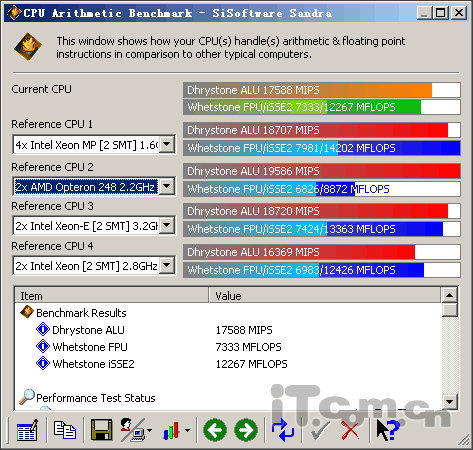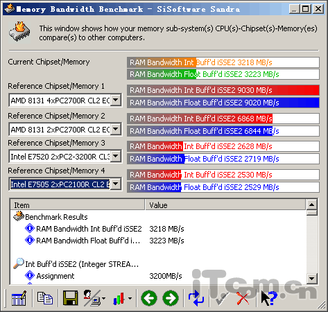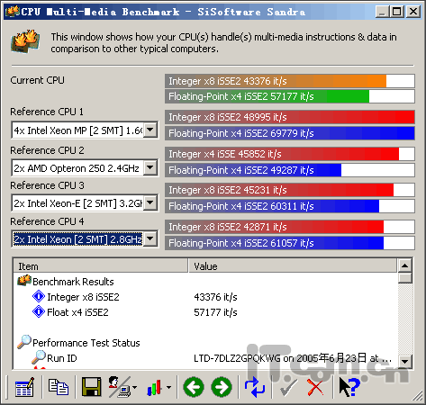 由上图可以看出,这款服务器的核心运算系统性能正好处于SIS给出的双路NOCONA 2.8G和双路NOCONA 3.2G的成绩中间,而这款服务器采用的正好是主频介于两者之间的双路NOCONA 3.0G,由此可以看出,这台服务器的数学运算能力跟SIS在开发测试时采用的服务器性能是十分接近的。