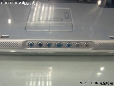 接口方面,具备六个USB 2.0接口、火线接口、PCMCIA卡插槽、网卡和MODEM接口、SD卡插槽、DVI输出、D-SUB外接显示器输出等。前面板设计了多媒体播放按钮。前置扬声器声音宏亮,效果出众。
