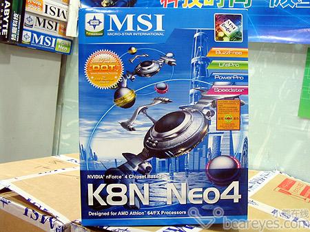 微星K8N Neo4-F主板采用了nVIDIA nFORCE4单芯片组设计,其能够支持1GHz Hypertransport,能够支持Socket 939架构全系列AMD Athlon64及闪龙处理器,由于处理器内置了双通道内存控制器,因此这款主板所预设的4根DIMM内存插槽,均可以支持双通道DDR400内存,其最大容量达到了4GB。此外,这款主板能够支持PCI-Express总线规格,其提供了一条PCI-E 16X显卡插槽,能够大幅提升数据交流带宽,最高可达8G/s,此规格远远高出AGP 8X平台,是未来显卡的首选搭档。