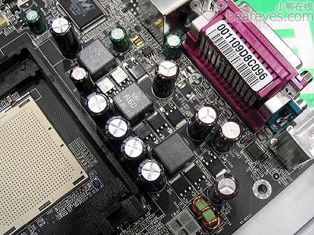 供电方面,此款主板秉承了微星旗下板卡产品一贯的严谨、扎实的设计风格,它采用了牢靠的三相回路供电设计,并辅以众多高品质大容量的日系nichicon、KZG直立式电解电容,为系统日后工作的稳定性提供了稳妥的保障。