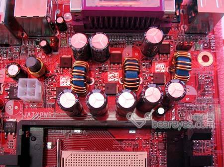 供电方面,这款主板采用了成熟而充足的三相回路供电设计,并辅以多颗高品质大容量的日系KZG直立式电解电容,分别是3颗1300微法16V和5颗3300微法6.3V的产品,耐温都是105度,如此设计充分保证了系统日后工作的稳定性。