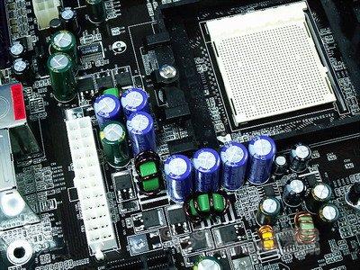盈通雪狐YNF4-Ultra虽然是目前最廉价的NF4主板,但它的做工用料却并不含糊。主板的供电部分采用三相供电回路设计,选用大量高品质日系Sanyo直立式电解电容为系统的稳定运行打下坚实基础。