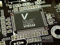 功能方面,这款主板集成了ALC850音频芯片,提供8声道立体音效输出。同时,它还板载了SimpliPHY系列中的VSC820IRX千兆网络芯片,并支持ActiveArmor硬件防火墙技术。