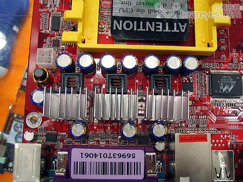 供电方面,这款主板选用了捷波惯用的固态电容加三相回路供电的设计方案,其中固态电容的使用,能够彻底解决普通电容带来的爆浆问题,大大延长了主板的使用寿命。同时,本款主板的MOF管上还额外添加了辅助散热铝条,配合扎实的三相回路供电能够为主板日后的稳定工作带来良好的保障。