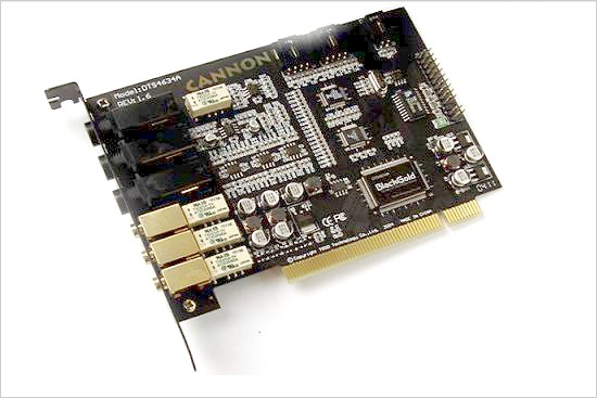黑金BlackGold II 5.1 Cannon相比BlackGold II 5.1 Value声卡而言,其在做工和用料方面更为考究,而且更专业化。接口方面,其提供了一组6.35mm口径和一组3.5mm口径的插孔。以往专业领域中才能看到的6.35mm口径的插孔,其相对更大的接触面积无疑会在音质的传输方面提供一份不错的效果。不过对于大多数多媒体电脑用户而言,6.35mm口径的接口并不常见,因此为了适合更多音箱采用的3.5mm插头,此款声卡除了提供3.5mm插孔之外,中还附送了一个3.5 to 6.35mm的转接插头。而且插孔全部采用了镀金工艺,使得该款黑金显卡更附有档次,当然也起到了良好的金属屏蔽效果和防氧化效果。相比其前辈,BlackGold II 5.1 Cannon无论从做工还是用料方面都更优秀,BlackGold II 5.1 Cannon不但采用了著名的红宝石电解电容,而且在PCB板方面也采用黑色亚光PCB。同时声卡上更采用了4个NAIS继电器,从而有效的避免了开关机时电流对音箱的冲击以及应用过程中静电的干扰。此外,在子卡接口旁边我们还能看到绿色保险元件,以保证主卡不会被反烧。总体来说,这款声卡还是十分诱惑的,价格也不算太贵,算得上物有所值。