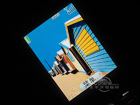 与众多使用QVGA分辨率(240×320象素)的手机屏幕一样,myX-8的显示效果相当的理想,26万色的色彩显示能力在色阶过度方面表现的十分平滑,颜色还原真实自然,画面的立体感很强,亮度也十足,令人感到极为满意。极细的点阵、丰富的色彩使其在显示墙纸等图片时宛如一张冲晒的相片。