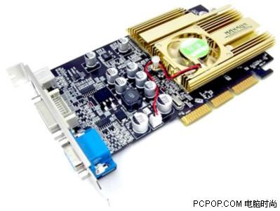 显卡的显存系统由8颗5ns/TOSP封装的显存颗粒构成,容量/位宽分别为128MB/128bit。核心/显存默认频率为为250MHz/400MHz;输出接口部分由D-SUB、S-VEDIO和DVI数字接口组成,满足用户不同的输出需求,并轻松实现双头显示。