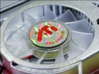 不过有个遗憾的地方,不得不告诉大家,这款迪兰恒进9550超值实用版采用了英飞凌4.5ns mBGA显存颗粒,容量虽然也有64MB,但位宽却也只有64bit。核心/显存默认频率为标准的250MHz/400MHz。