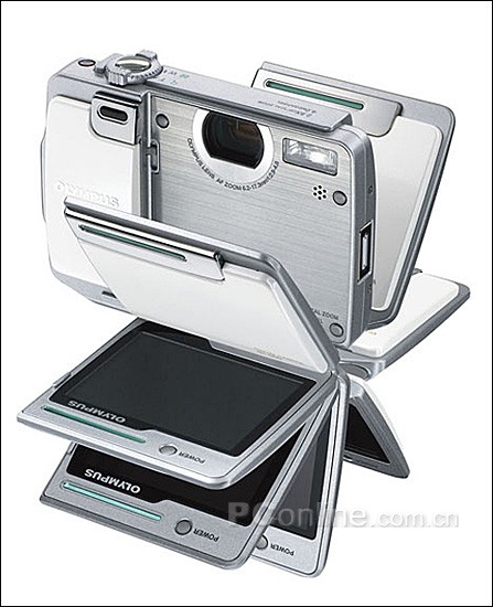 说到前卫,奥林巴斯IR-500的造型可谓当之无愧。一反数码相机外观的常规,构思脱俗奇特,其最大卖点是可翻转360度的2.5英寸大型液晶屏,可进行任何角度的拍摄,还有那独特的双面操作方式和多用途机身底座。当然,这部机的象素只有400万,比今年的主流机型稍低了点。