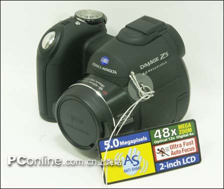 留意过DC长焦市场的读者都知道,前段时间的中端长焦市场由松下FZ20/柯达DX7590/柯尼卡美能达Z5三雄分立,这次笔者要介绍的是柯美的Z5。DiMAGE Z5采用了12X GT光学变焦镜头,附带柯美独家AS机身放抖技术,有助于长焦拍摄。Z5跟它的前代产品Z3一样,具有快速对焦功能,对比Z3的改进之处是象素提高到500万,LCD升级到2.0英寸,采用全新的CxProcessTM III图像处理引擎,成像质量更好。而Z5的缺点是外形不够美观,使用高ISO值拍摄时噪点较多,在黑暗环境时的对焦能力不强。