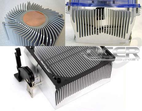 由于成本的原因,低端散热器的材质大量采用铝合金,这样的好处在于加工费较低,同时开发周期短,可有效降低售价。但为了进一步提高散热器的导热性能,也常常会在铝质散热块中央塞入一个铜芯,使CPU的热量能够更快地传递到散热片上。本次参与评测的散热器产品,大部分为纯铝材质,也有若干产品在吸热底加入了铜芯。