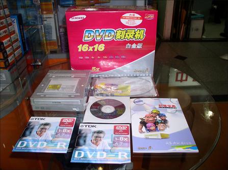 另一款来自三星499元的双16速DVD刻录机也已经换了全新版本,型号为三星TS-H552U白金版,而且还赠送刻录宝典和两张TDK DVD-R碟片。