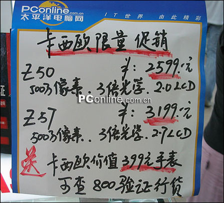DC市场竞争激烈,厂商的促销活动也很多。你方唱罢我登场,你送手表我送手机。有时狡诈的JS连厂家的礼品也要克扣,太黑了吧。如下图所示,卡西欧的促销活动是买数码相机送价值300多元的手表,如果类似的礼品都被JS克扣的话,那JS也获利不少。