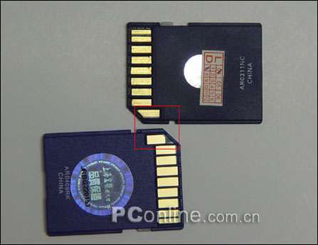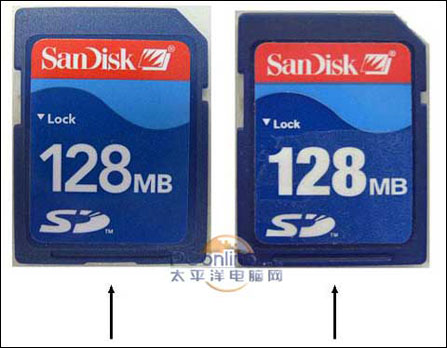 而目前市场上常见的存储卡有SD卡、MMC卡、CF卡、索尼记忆棒和XD卡等五种,采用什么类型卡一般由相机决定。鉴于SD卡比较通用,除了行货外,SD卡的水货和假货也大行其道,故下面介绍它们鉴别方法。这里以SanDisk存储卡为例,真货和假货的鉴别方法如下:一是先看包装,印刷,从包装和印刷质量辨认真伪;二是从外观上看,假货的SanDisk存储卡下方无凹槽,而真货却有;三是从金手指可以看到分别,如下面的图片所示;四是看存储卡本身的防伪标志,sandisk的激光防伪标签,在标签上会有一行10位编码,行货的号码不会被刮花,但假货的一般粗制滥造,模糊没有层次感,甚至用手指可以刮掉。五是如果单凭外观还是无法判定的话,可以带上你自己的“装备”,因为真正的SanDisk存储卡都可用PDA或者笔记本查看存储卡的信息,是真品就可以从屏幕上读到SanDisk的Logo标志及其内部信息。