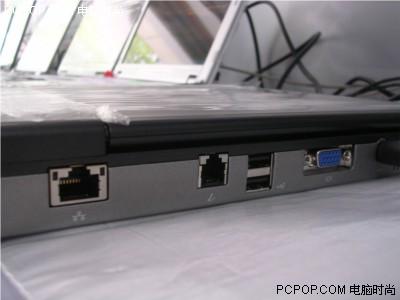 D410提供的扩展接口很齐全,机身加扩展底座的接口一共有以太网卡、MODEM、USB接口、串口和并口、PS/2键盘鼠标接口等,至于VGA输出、耳机话筒插孔和外接电源插孔更是不在话下。
