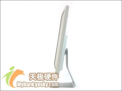 该款显示器采用了灰白色的外观设计,全金属材质的外壳。由于采用了外置电源设计,因此机身显得非常的纤薄,最薄处仅为20mm,将该款产品轻薄纤巧发挥到了极致。同样金属材质的的L型底座直接连接机身,看上去十分轻巧,给人一种前卫时尚的全新体验。