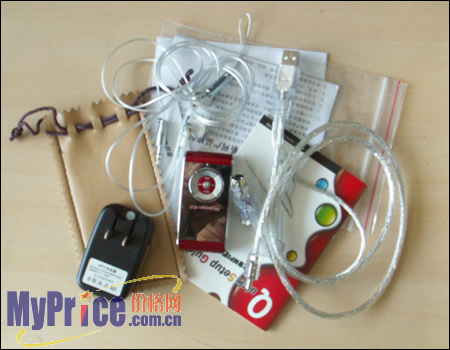打开包装盒,B06静静的躺在盒子中央。其配件较为丰富,有:说明书, USB连接线,耳机,驱动光盘,充电器,保护袋等。不过有些令人遗憾的只配有一个耳机,如果你想把双耳机插孔充分利用的话,还需要自己去配一个。