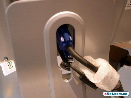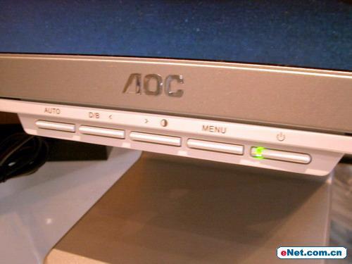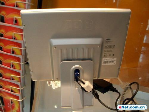 AOC 174F外观漂亮,做工也比较出色,全金属外壳令人印象深刻。由于采用了超窄边框,所以和前作154F一样,这款产品也是在显示器下部增加了一块区域来设置OSD按键,不过由于颜色、样式搭配的非常恰当,所以看起来并没有什么突兀之感。174F的背部设计也别具一格,D-Sub和电源接口都采用了横向的设计。猜想应该是产品太薄了,如果采用竖向接口的话,使用起来很有难度。