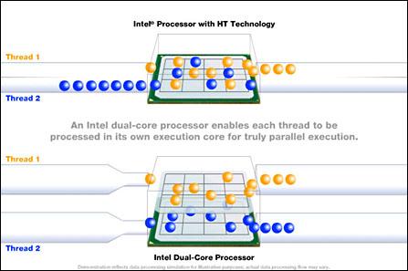 然后到了2005年的4月18日,INTELl正式发布全新采用双核心设计的Pentium D 处理器(具体情况可以查看 富士康955主板+Intel双核CPU全球首发!),他革命性的把两颗处理核心设计在一起并使它们能并行工作,Pentium D的诞生可以说是CPU发展史上的一次巨大的进步,它开始摆脱以往单纯依靠提高频率来提升处理器性能的做法,真正把双核心并行处理技术引入到实际应用中。