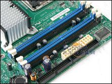 主板使用了4相加强式供电电路,同时选用了大量优质铝壳电容,能为高端的奔腾处理器提供足够动力。主板配置了4条DDR2内存插槽,支持DDR2 667内存双通道,并用颜色区分开,最大支持4G容量。