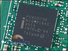 从该主板的型号相信大家都能猜到它是使用Intel945芯片组的产品,它使用了内建GMA950图形功能的945G北侨,GMA950支持DirectX9,基本上能满足一半用户的工作和娱乐需求,而它的南桥搭配了编号为“NH82801GR”的ICH7R芯片。