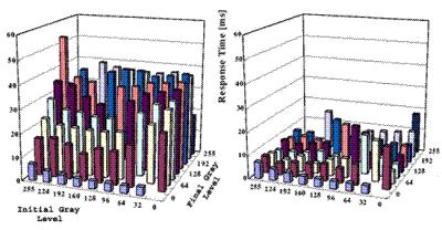 从上图可见,overdrive 带来的效果显然易见,但是对于不同色阶往往效果也不同,而且并不是所有色阶转换过程需要加压提速,在图表中最明显的就是从白色到任意灰阶在使用overdrive 前后并没有什么不同。