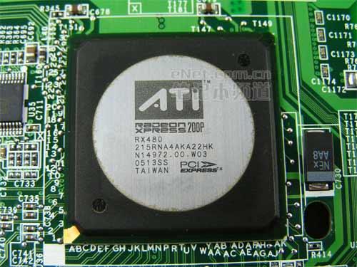 随着PCI-E标准的颁布,ATI X系列和NV的 6 SERIES把战争从台式机中延续到了移动显卡领域。上图是法拉利4000中的X700显示模块,关于NV GO 6600和ATI X700谁更强悍的争论从来就没有终止过。关于NV的TURBOCACHE技术很受人关注,ATI的FIRL GL可以胜任图形工作站的要求……