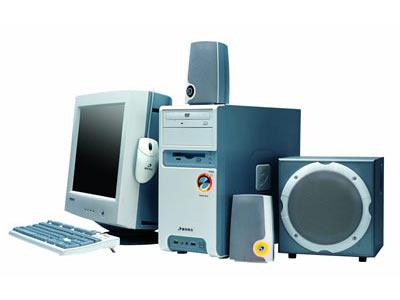 与以上两款电脑相比,清华同方电脑走出了黑色和银色相配的框架,而是采用传统电脑的纯白色配置,但是与传统的机箱所不同的是一个巨大的电源按钮非常醒目,这不由让笔者想起了纽扣是衣服的眼睛这句话。虽然这款台式机采用了传统的配置机箱,但是在细节之处的大胆变革更让人有一种耳目一新的感觉,比如键盘上按键的颜色和音箱的颜色是一样,总体上的感觉上简洁清秀。在配置方面,真爱 K7380同样采用了Intel Celeron D处理器,主频为2.53GHz,256MB DDR内存、7200转40G硬盘、16倍速DVD-ROM。在网络方面,56K调制解调器和集成10/100M同样是一样都不少。显卡采用了独立的Geforce4 MX4000,64MB显存容量。显示器也是同样采用了17英寸纯平显示器和标配2.0音箱。