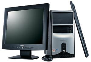 这款长城俊杰6026D采用赛扬D处理器,频率达到2.66GHz,内存为256M,80G(7200转)硬盘,集成64M显卡,16速DVD-ROM,2.1低音炮音箱,配17寸纯平显示器。