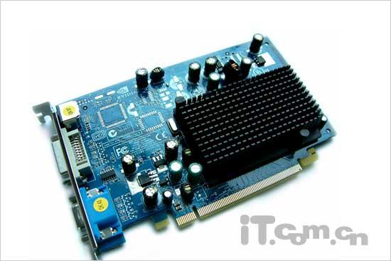 影弛显卡对于蓝色的偏爱从包装盒上就已经不难发现,当然这款影驰Geforce 6200TC的PCB板自然也不例外,它采用了P282公版设计,由于核心发热量不大的关系,一款做工精细的黑色散热片覆盖在核心上,与蓝色的底板相得益彰。 影驰Geforce 6200TC采用NV44图形芯片,它拥有4条流水线,3个顶点着色引擎,支持SM3.0和DirectX9.0c,由于采用先进的0.11微米工艺,使其核心具有较强的超频性能,核心频率为350MHz,上升的空间仍有相当一部份。