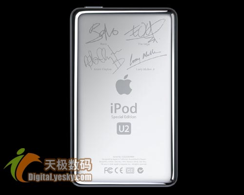 iPod U2纪念版上也能看到这一点,iPod U2纪念版除了外观上的区别,在配置与性能上仍旧与普通版本保持一致。U2纪念版和iPod4代内部是一样的,它采用1.8英寸20G容量的硬盘,可以容纳5000首歌。2英寸的黑白LCD背光屏幕,内置锂电池。提供长达12小时的连续播放时间。这款产品背面采用了光滑的金属镜面设计,而且还有U2队员的签名,这也正是iPod U2纪念版的魅力所在。