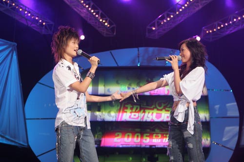 超级女声总决选首场,李宇春(左)与张靓影合唱