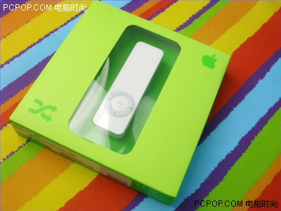 纯绿色的外包装,配合纯白的iPod shuffl播放器,确实给人一种很舒畅的感觉!可以说从外包装来观察,iPod shuffl依然延续走着苹果的时尚包装路线!小巧是iPod shuffle的一大卖点,其厚度只有8.5mm,重量为22g,携带比较方便。它支持MP3、AAC、WAV和Audible格式音乐的播放,内置的充电锂电池可以连续播放12小时。