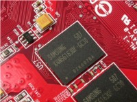 再次就是显存了,该显卡的显存系统是由8颗3.0ns的GDDR2显存颗粒构成,容量为256MB,位宽为128bit,默认频率为533MHz。与前面4款公版X700显卡相比,该显卡的显存速度有所缩水,但容量却增加了一倍,弥补了速度上的缺陷。