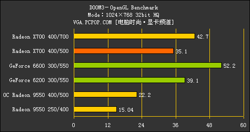 从上面的测试成绩来看X700的成绩要与6600各有胜负,但总体来说X700在多数测试中要领先6600,而且幅度比较大。在游戏的实际表现中也比较出色。