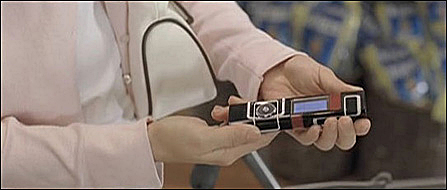 | 既像唇膏又像录音笔的7280,是“倾城系列”中最吸引眼球,同时也是最神秘的一台手机。在影片中李心洁可谓当了一会诺基亚的展示MODEL,亲自示范了一次7280的使用状况。65536色TFT屏幕,104×208像素的分辨率受到一致好评;仅84克的它拥有51M的大容量内存,还支持蓝牙......不过从它的外表我们也可以想象到7280的弱点--旋控键使操作变得困难,尤其是在输入短信的时候;另外昂贵的售价也让时尚年轻人却步。