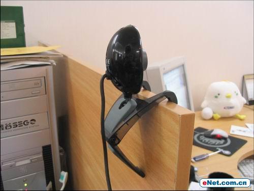 WebCam Live!在外观上成椭圆形,在黑色的外壳上镶嵌的银色面板做工非常精致。其镜头周围为橡胶材质,手感非常好,让您在调解焦距的时候不会发生打滑的情况,而且也防止了万一不小心摄像头意外摔落后对镜头产生影响。