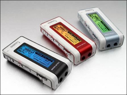除了iAUDIO,韩国三星的MP3随身听产品大多也使用SIGMATEL芯片方案。三星最新推出的闪存MP3??F1,就是一款使用SIGMATEL 3520芯片的MP3。F1是一款设计非常独特而且非常漂亮的MP3,它被设计成一个夹子,不锈钢的夹扣扣可以把机器随意扣挂在包带或者是腰带上,如果想更绚的话,可以直接夹上衣服上。另外,面板可以自由更换,在包装中不同颜色的面板,女生可以更换不同的面板来适配不同颜色的衣服,绝对能体现个性。