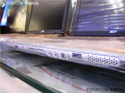 前置红外线接口、音频接口以及两个长条状的蓝牙/无线网卡快捷键不用多说,可以说是Acer本本的特色了,不同的是TravelMate 4102LCi还把一个USB接口设置在前面,用起来非常方便。 在接口方面火线、4in1读卡器、PC卡插槽、2×USB2.0、S-Video端子以及网络接口,VGA接口一应具全。