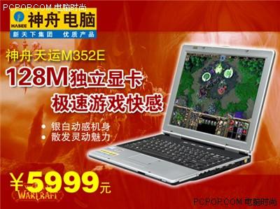 神舟一款5999元的天运M352E,则一定能满足对价格敏感的众多游戏爱好者的需要。128MB独立显卡,带来图形性能和整体性能的压倒性优势。ATI M11图形核心支持当前几乎所有主流的图形特效,令整体性能也得到提升。