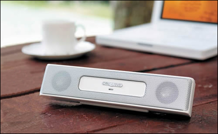 这款Creative TravelSound Notebook 500除了很好的继承了便携式音箱的众多特点,还在音箱上特别设计了一个方便卡子,通过它,可以将音箱直接固定在液晶屏顶部,为您带来美妙音乐的同时,最大限度地节省了桌面空间,说它是一个精致的装饰品也不为过。对于笔记本用户,这个小巧的音箱还可以跟随主人出差、会议、娱乐,让您在工作中更加出彩,在休息时愉悦心情,为您的旅途带来无穷乐趣。