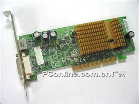 MSI另外这款绿色PCB的9550SE显得特别清爽,刀版设计,目前零售价格仅仅为399元。整张卡看上去较为整洁,比较特别的是只配备一个DVI口输出,使用CRT的朋友要通过随卡附送的DVI转折口才能正常使用。散热方面和上面的Geforce Fx5200恰恰相反,其只使用散热片作为散热方案。不过0.13制程的RV350和核心发热量小得惊人,超频到400Mhz后满载运行也只是稍微感觉到一点热量。RV351在这方面是值得称道的。