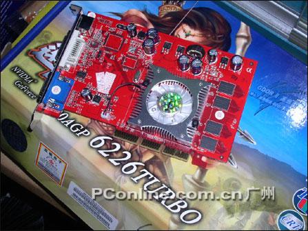 下面就让笔者给大家介绍一下这款只要498元的双敏速配6226 Tubro,其基于GeForce 6200A图形处理器,6层PCB板设计,搭配4颗elixir南亚FBGA封装GDDR2显存,组成256M/64bit规格,默认核心/显存频率居然高达400/800MHz!