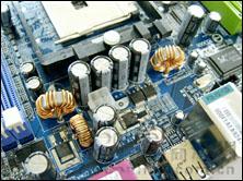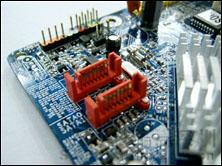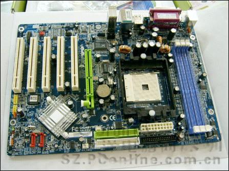 该主板具有技嘉原厂风格,采用蓝色PCB大板设计,有别于K8T800的单芯片设计,CPU供电只设计了两相电路,看来不太适合超频,但是正常使用时供电是绝对不成问题的。技嘉 GA-K8U有三条DIMM内存插槽,支持DDR400等主流内存规格,最高可扩充到3GB。