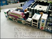 主板可支持两个SATA硬盘,内建Realtek 8100C百兆以太网卡和ALC850 8声道声卡。