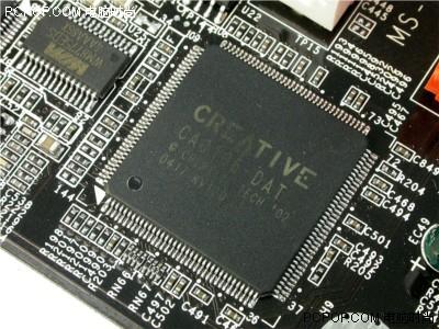 2、音频部分。不能不提的是此主板的音效输出,由于MCP04并没有像预期般支持SoundStorm,因此为了补足对音效能要求,MSI P4N Diamond加入了Creative sound Blaster Live 24位音效芯片,代替MCP04的AC97 2.3,支持24Bit 96KHz音效品质,同时音噪比更达100db SNR Clarity,提供7.1 surround Sound及Doby Digital输出,音效方面绝对是nForce 4 Intel Edition中的冠军。